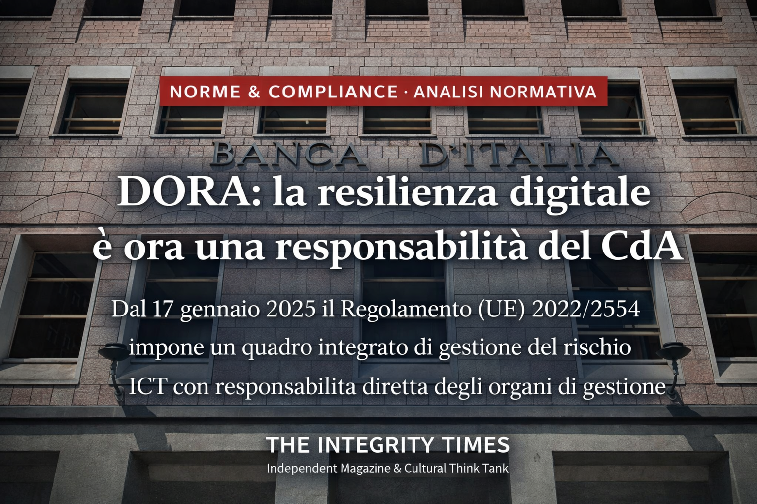The Integrity Times  ·  Norme & Compliance  ·  Marzo 2026  ·  Fonti: GU UE L 333 del 27.12.2022 · Reg. (UE) 2022/2554 · D.Lgs. 23/2025 · Banca d’Italia · EUR-Lex