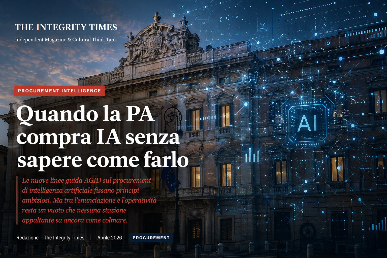 Le nuove linee guida AGID sul procurement di intelligenza artificiale fissano principi ambiziosi. Ma tra l’enunciazione e l’operatività resta un vuoto che nessuna stazione appaltante sa ancora come colmare.